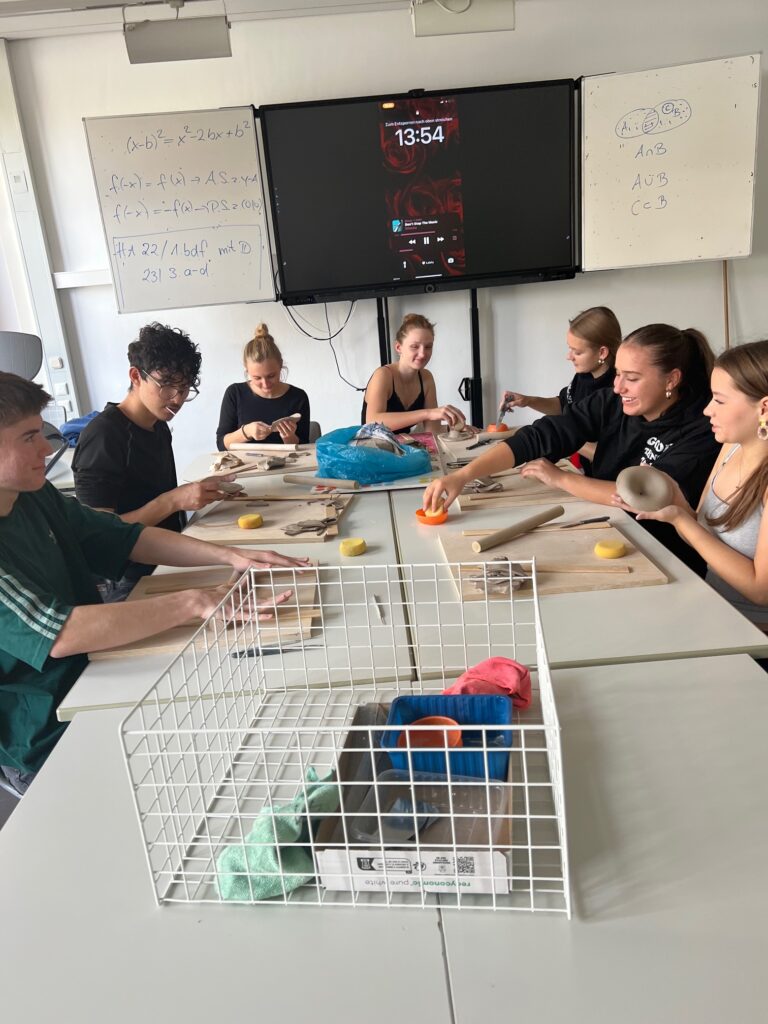 Da die Weihnachtszeit immer näher rückt, haben wir begonnen an den ersten Weihnachtsgeschenken für unsere Verkäufe zu arbeiten, mit denen wir Spenden für unser Soziales Projekt in Rumänien sammeln wollen. Mit sehr viel Spaß haben wir begonnen, Abdeckungen für Meisenknödek zu töpfern, die die Form eines Pilzes haben sollen.